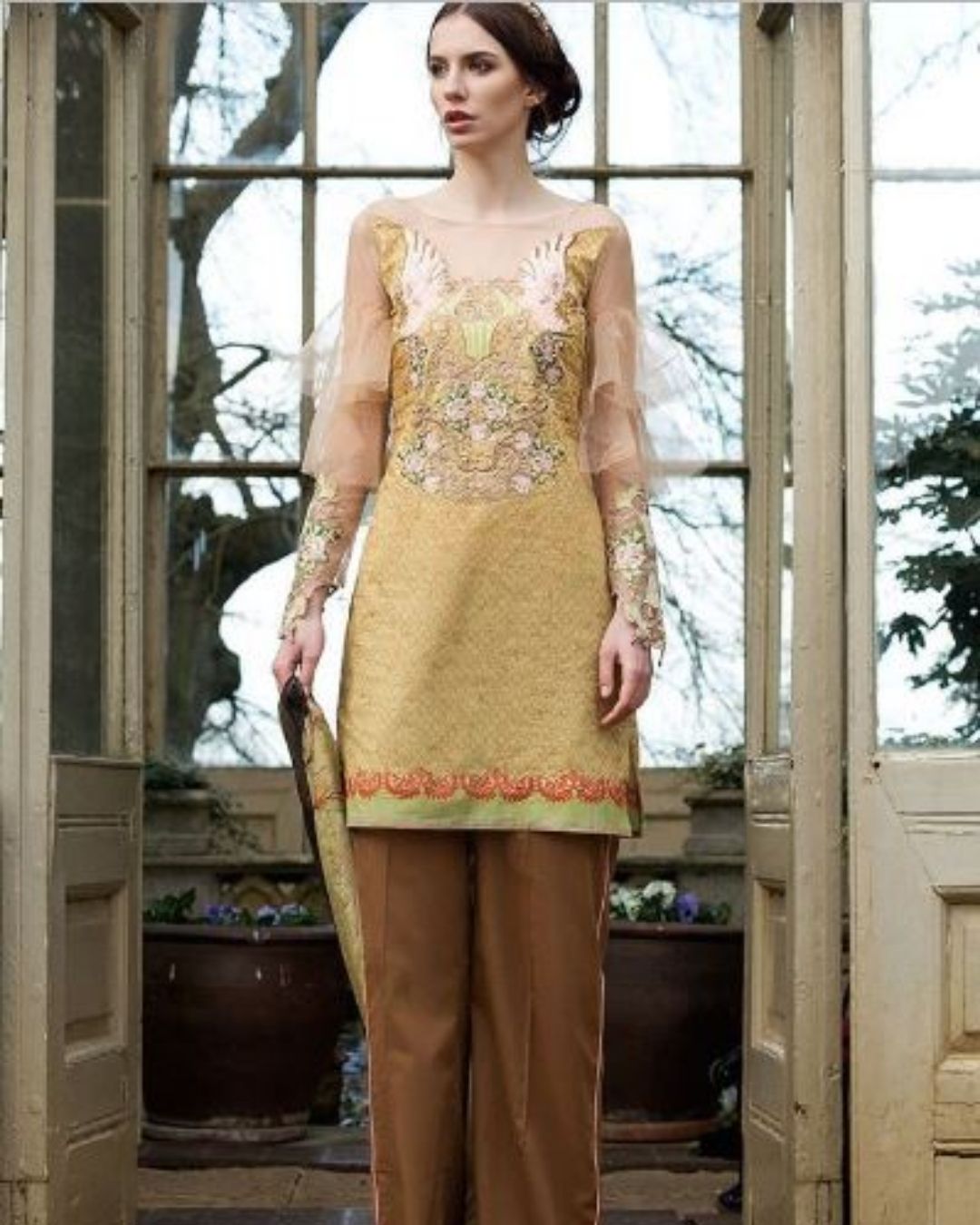 Fabric: Lightweight printed lawn shirt; breathable dyed cambric trouser; digital printed silk dupatta.